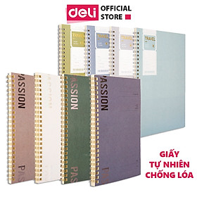 Sổ Lò Xo Kép A5 Deli - Sổ Gáy Xoắn 120 Trang Giấy Kẻ Ngang Chống Lóa - Sổ Tay Tập Vở Học Sinh Ghi Bài Takenote Planner